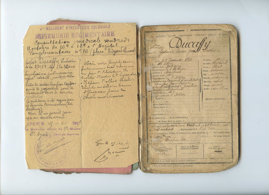 livret militaire et cartes postales d'un soldat détaché aux troupes indochinoises coloniale 1914-18