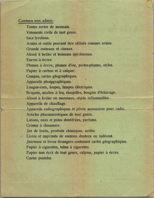 avis important pour l'envoi des lettres et colis aux prisonniers de guerre 1939-45