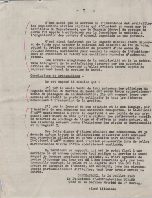 ordre félicitations magasin général service de santé de Châteauroux campagne 1939-40