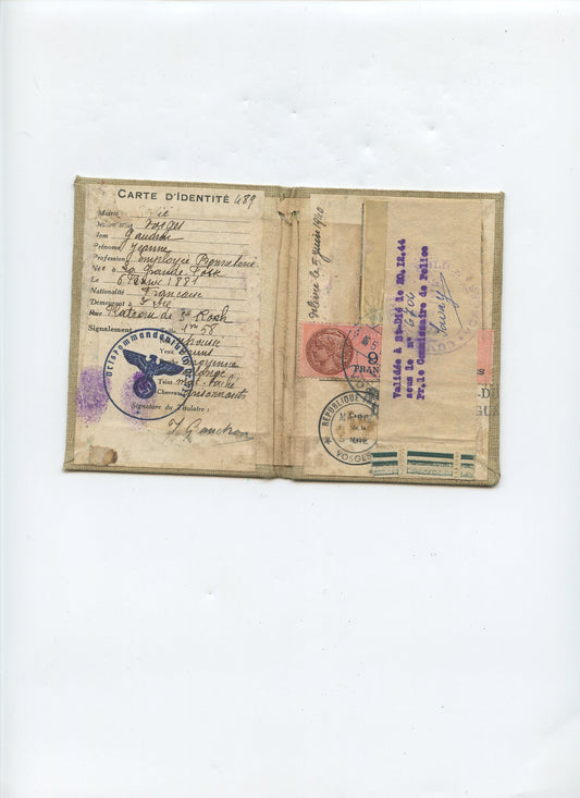 carte d'identité pour une civile de Saint Dié Vosges 1939-45, tampon allemand avec aigle