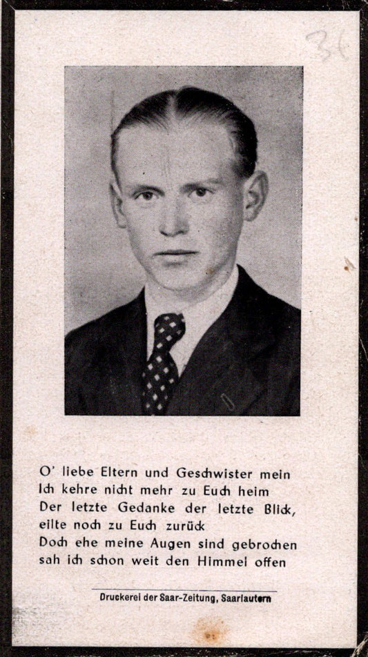 carte avis de décès soldat allemand originaire de la Sarre tombé en 1944 a Tarnopol