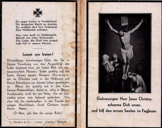 carte avis de décès soldat allemand d'infanterie originaire de Moos tombé en 1944 Russie