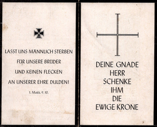 carte avis de décès soldat allemand d'infanterie originaire de Losheim tombé en 1942 Russie décoré croix de fer