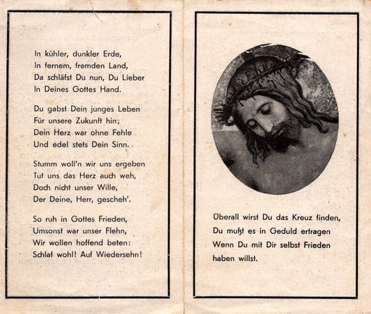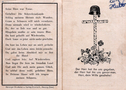 carte avis de décès soldat allemand originaire de Merzig tombé en 1945 Tchécoslovaquie