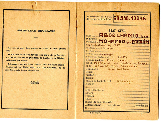 rare livret militaire d'un tirailleur indigène du Maroc 5°RTM 1960