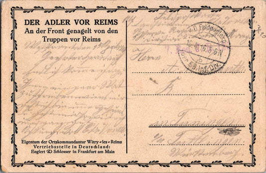 carte postale et carte photo aigle de collecte de fonds (clous) vers Reims 1916