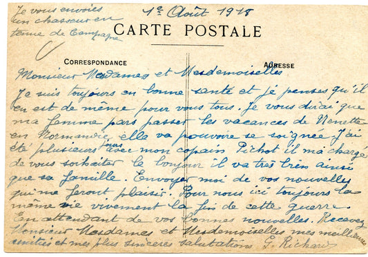 carte de correspondance avec les départements envahis Celles sur plaine 1914-18