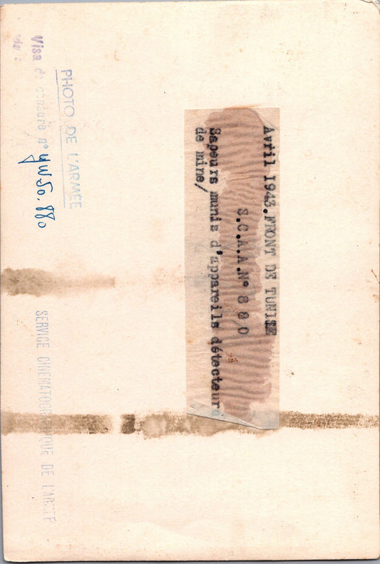 grande photo sapeur du génie au déminage campagne de Tunisie 1943 17x12 cm