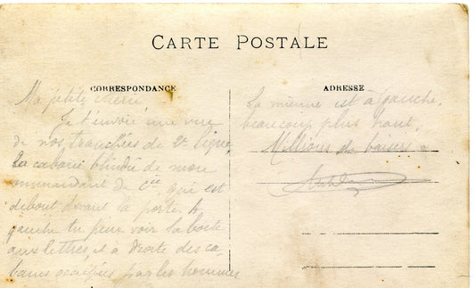 carte photo d'un officier du 131°RI devant un abri de 2° ligne, porte avec insigne 1° chasseurs 1914-18