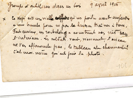 photos d'artilleurs dans un bois avril 1916, légende au dos