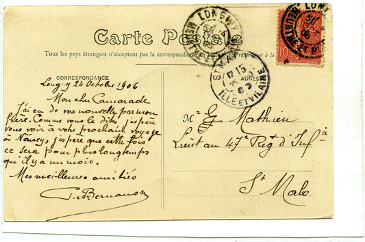 carte postale du 9° bataillon de chasseurs, Longwy 1906