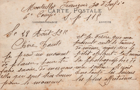 carte photo groupe du 30°RI Annecy écrite par un soldat tué en 1917 au Chemin des Dames