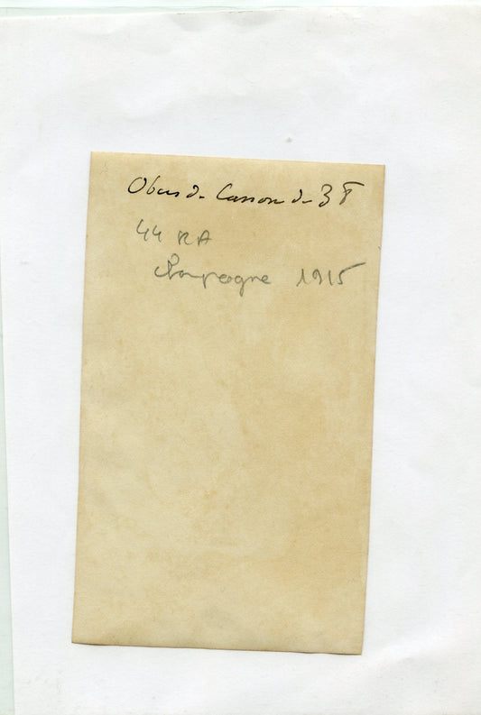 photo d'un artilleur français avec deux obus de 37 dans les mains 44°RAC Champagne 1915 10,5x6,5 cm