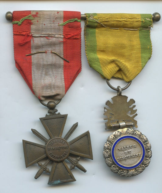 ensemble 2 médailles : médaille militaire et croix de guerre TOE montées sur attache à boules