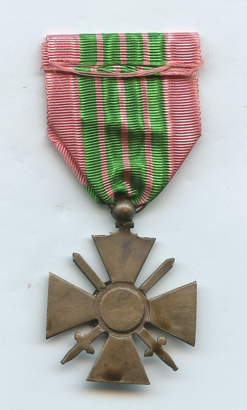 croix de guerre 1939, fabrication uniface avec cercle en creux au dos, 1 citation