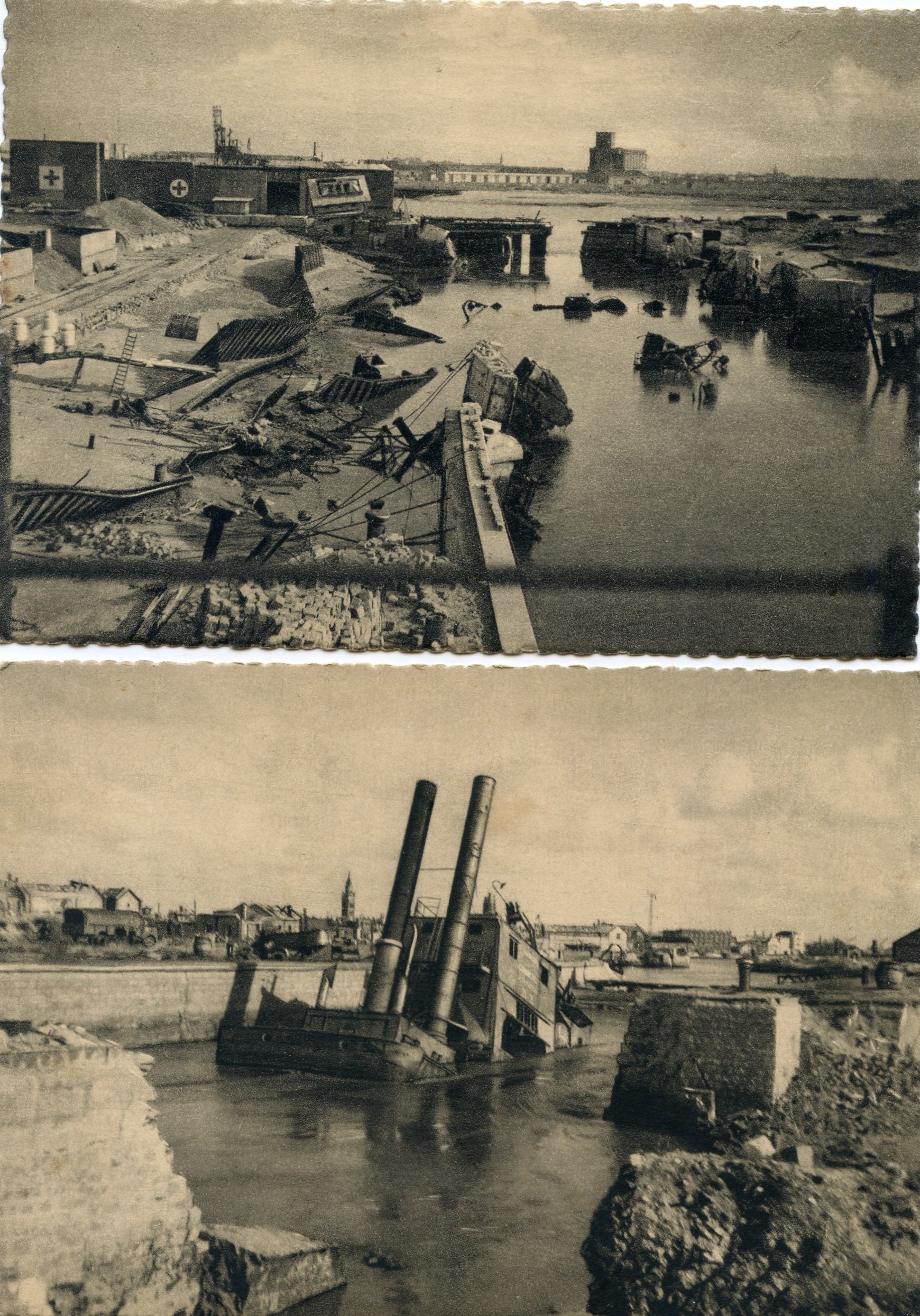 2 cartes postales destruction du port de Dunkerque 1939-40
