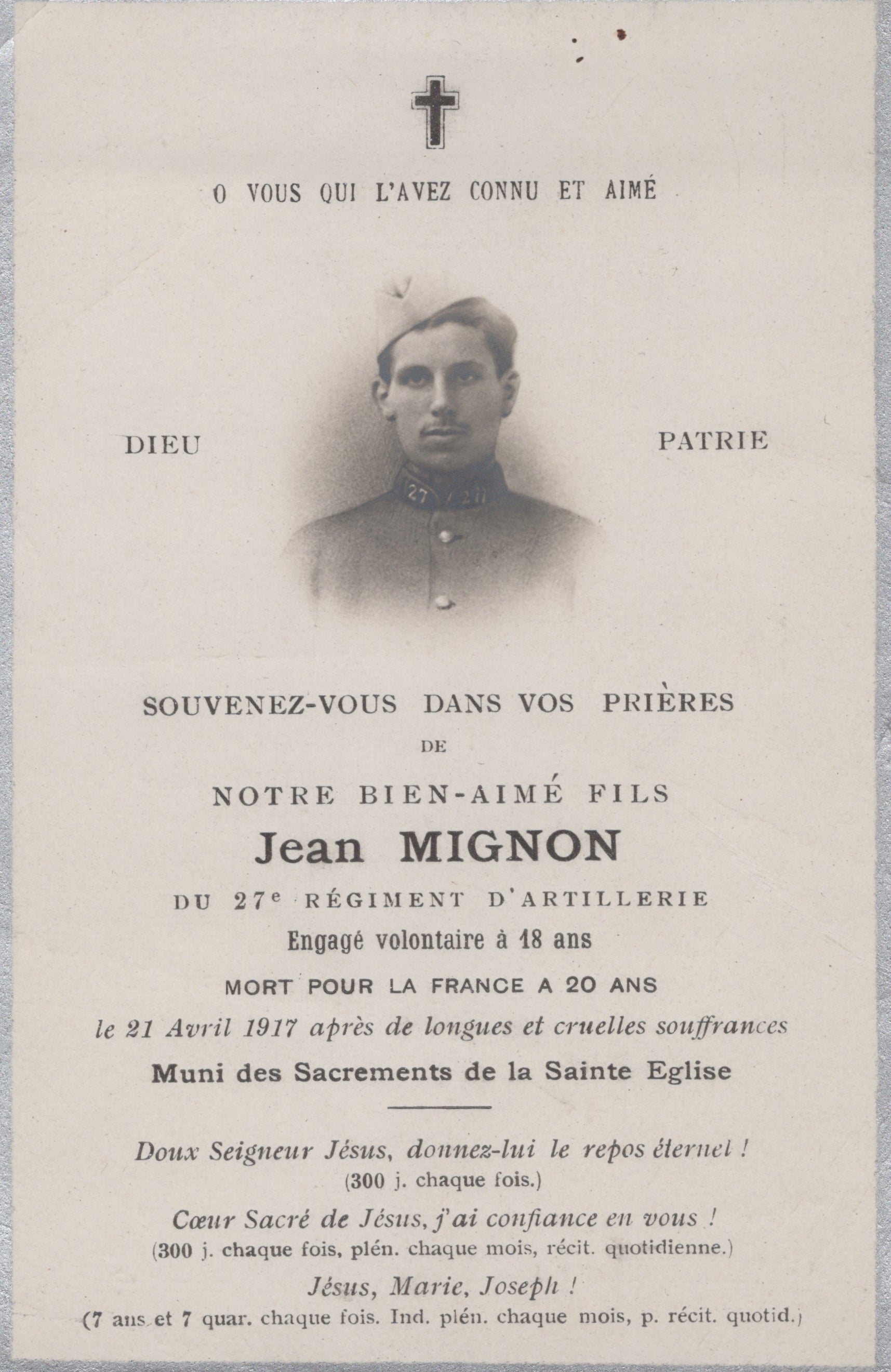 carte avis de décès artilleur du 27°RA, engagé volontaire, mort en avril 1917