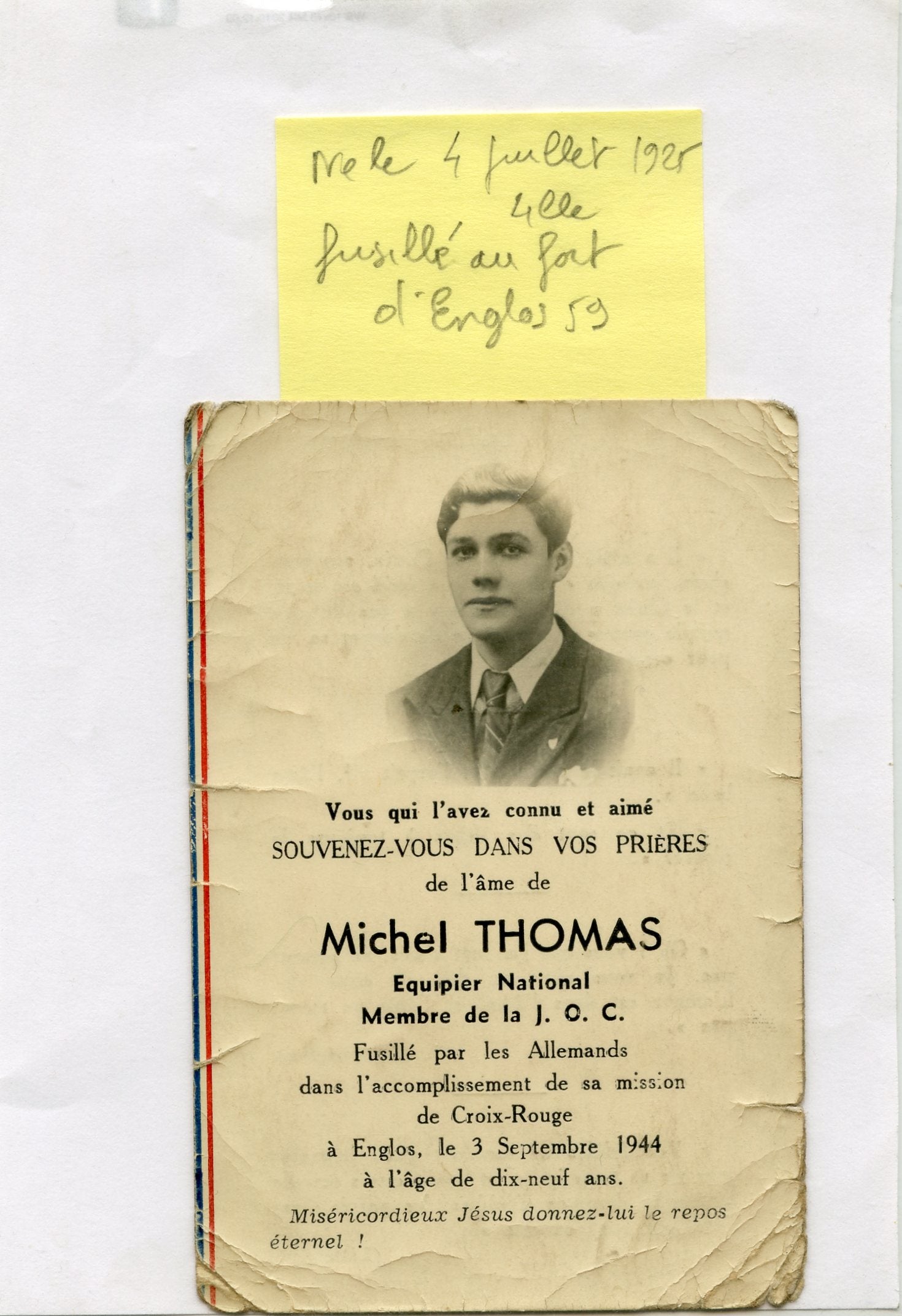 carte avis de décès d'un résistant de la croix rouge fusillé par les allemands à Englos Nord en 1944