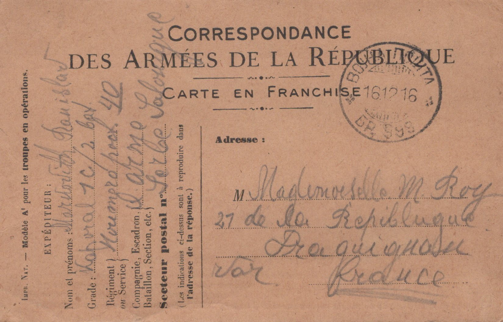 carte de correspondance militaire écrite par un soldat serbe à Salonique armée d'Orient 1914-18