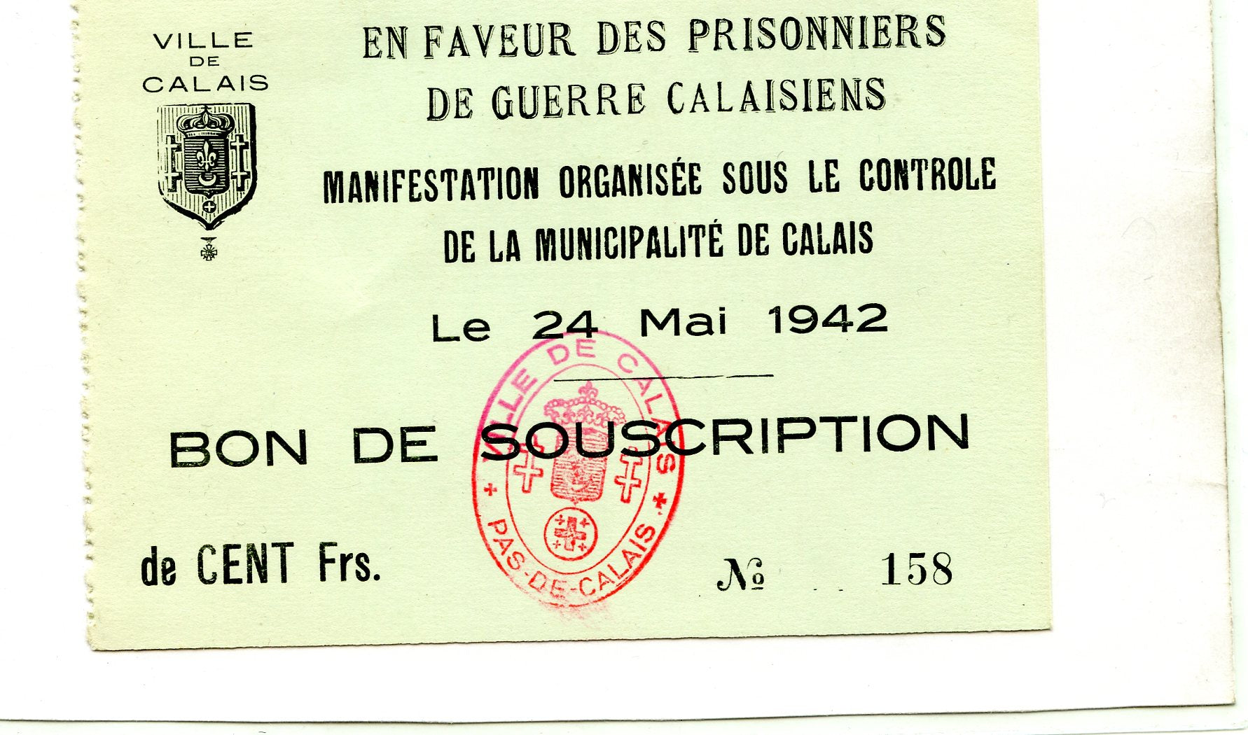 carte de souscription en faveur des prisonniers de Calais 1940-45