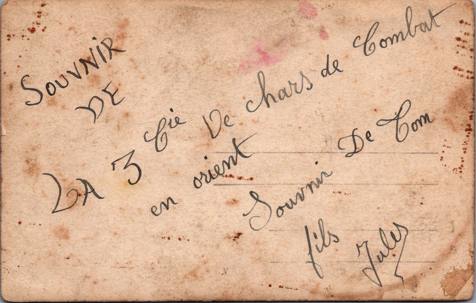 carte photo 3° cie du 61° bataillon de chars de combat en Orient FT17 fanion