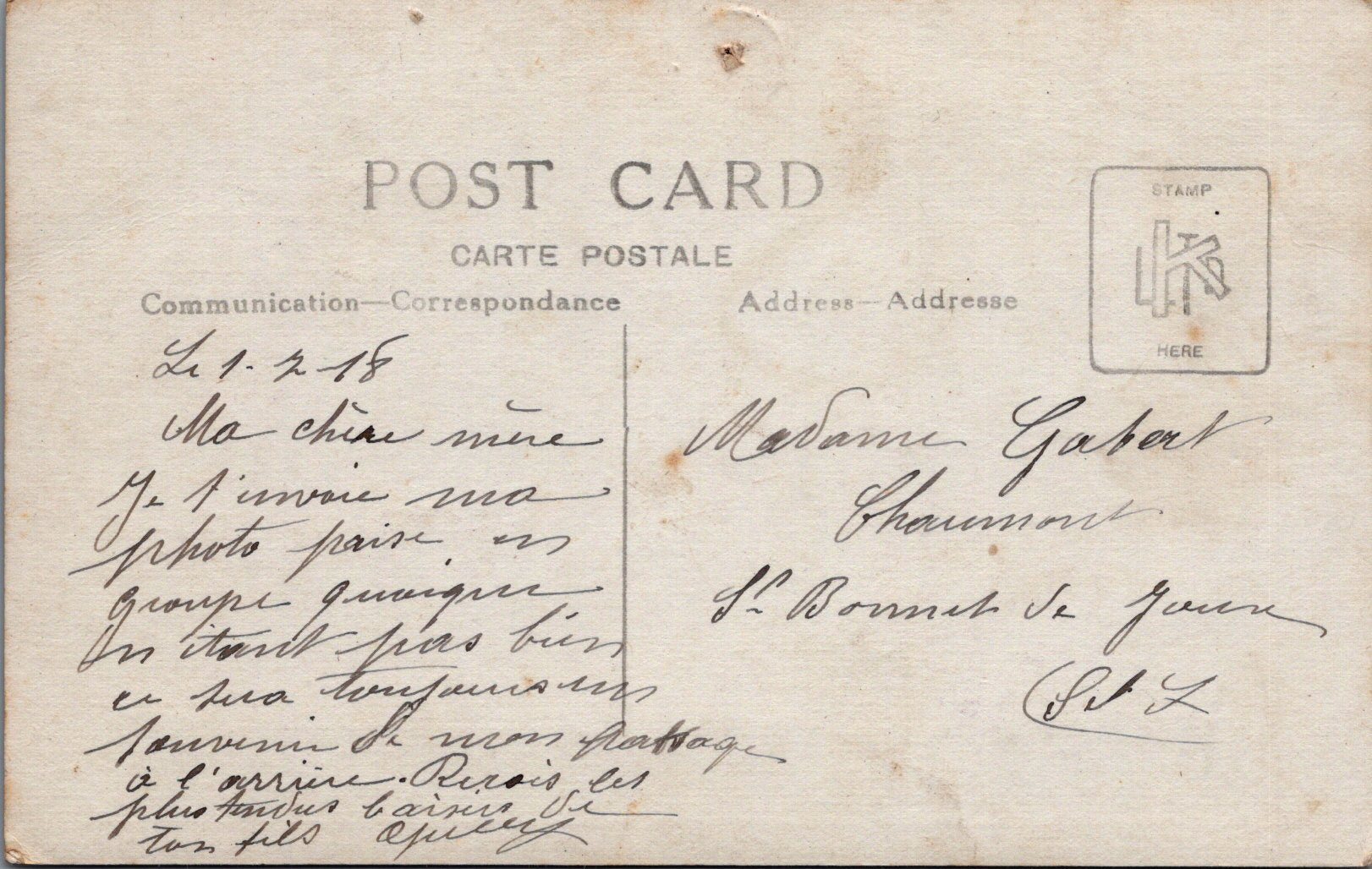 carte photo cours 214 de chars de combat, artillerie spéciale FT 17 juillet 1918