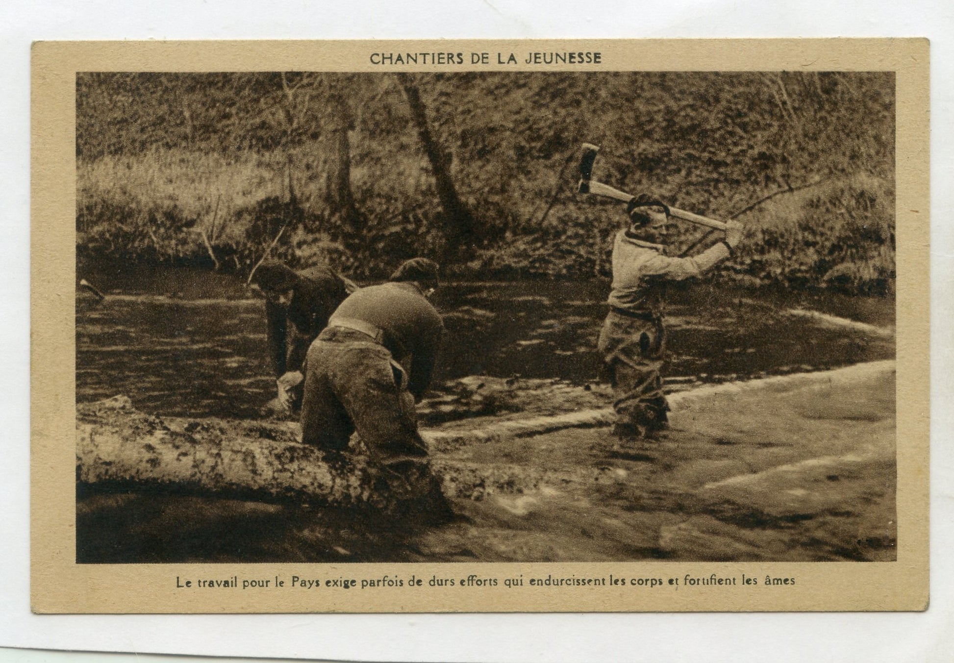 carte postale chantiers de jeunesse pré imprimée travail pour le pays
