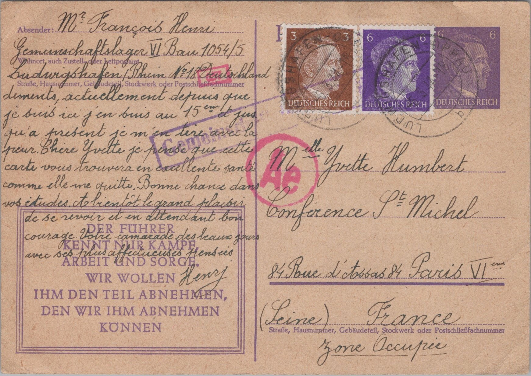 carte postale d'un travailleur du STO envoyée en France, Timbres 1944