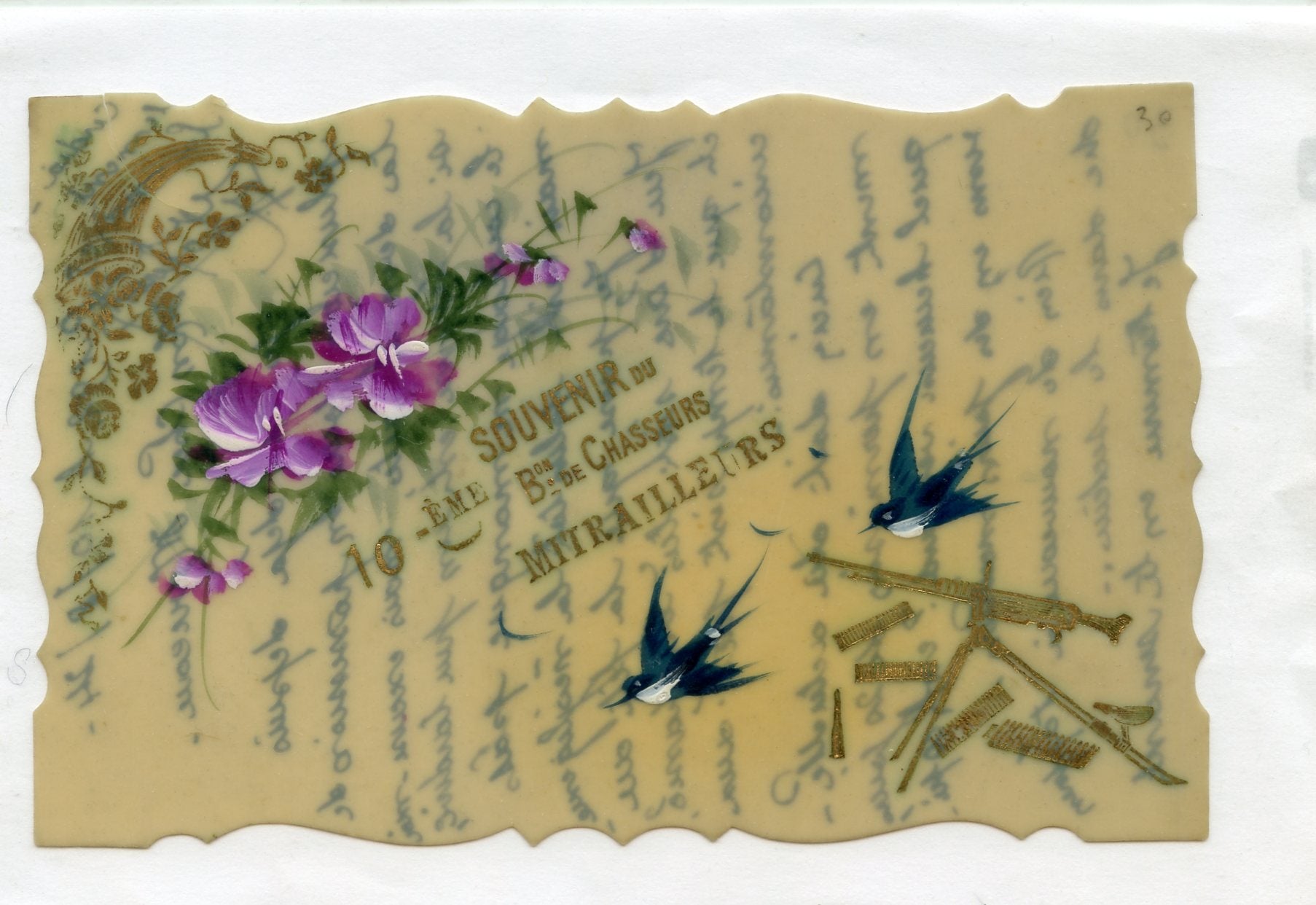 carte postale en celluloïd 10° bataillon de chasseurs mitrailleurs 1924