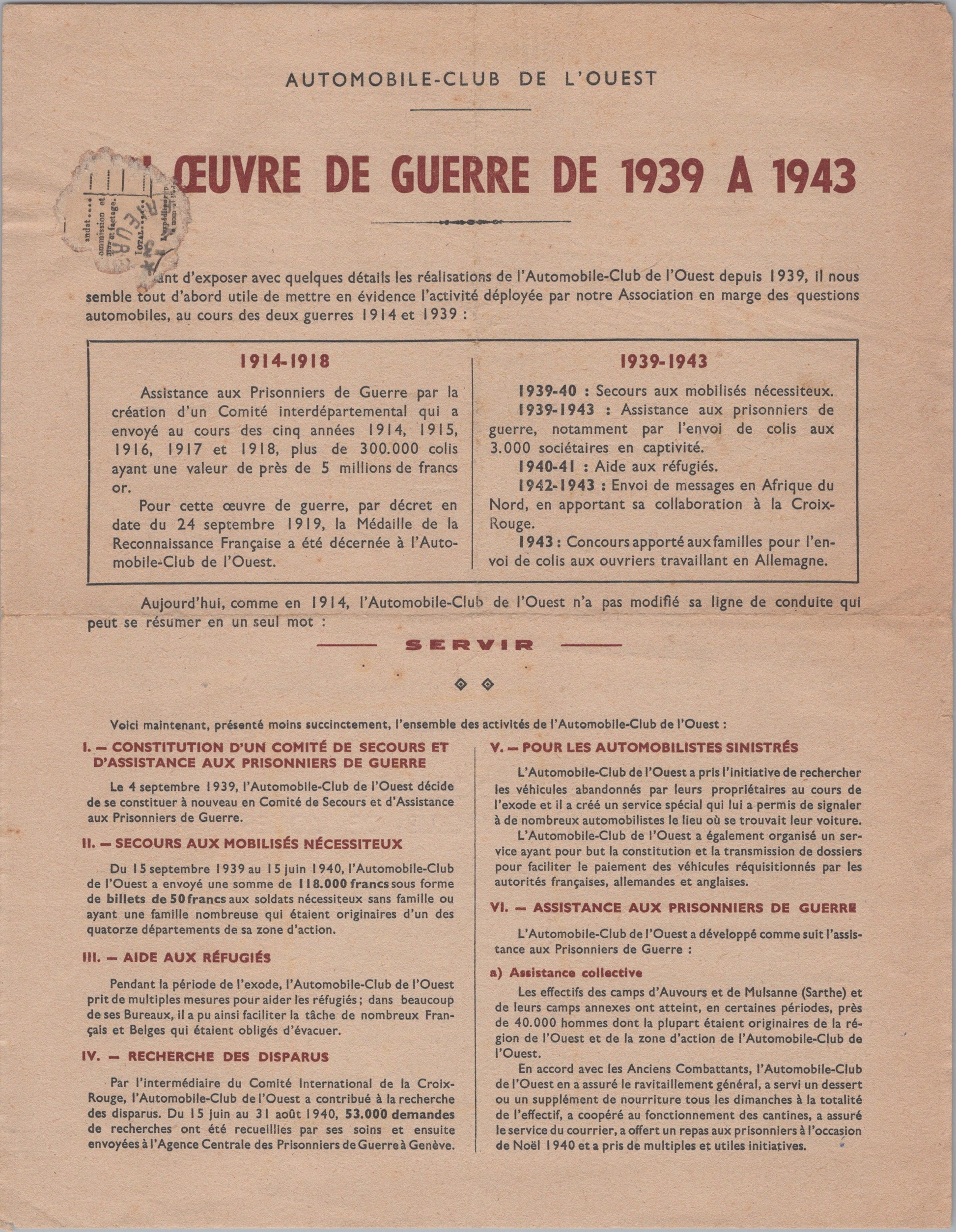 document oeuvre de guerre 1939-43 automobile club de l'ouest