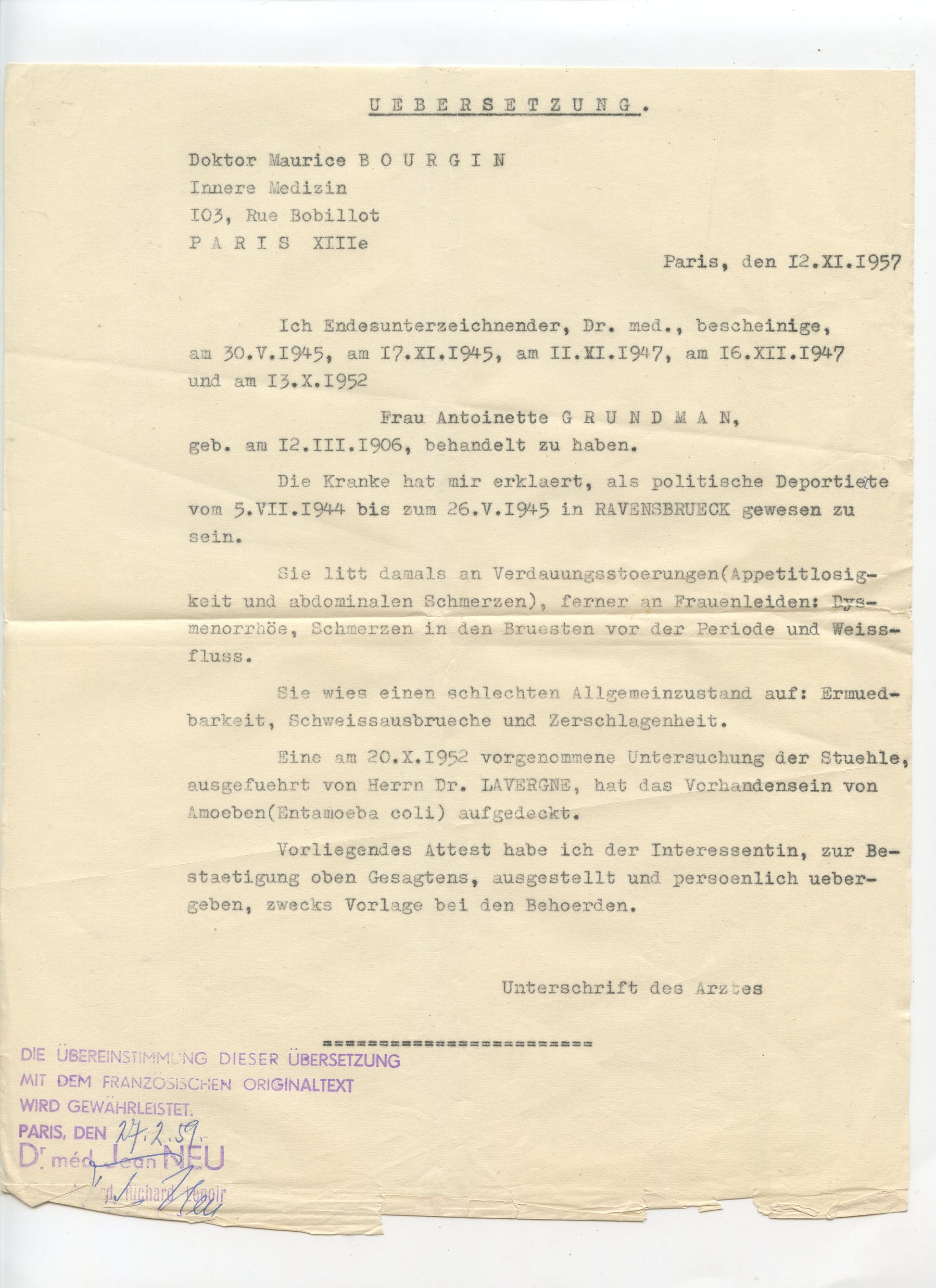 documents et cartes d'une femme israélite d'origine polonaise déportée de France vers Buchenwald 1943-44