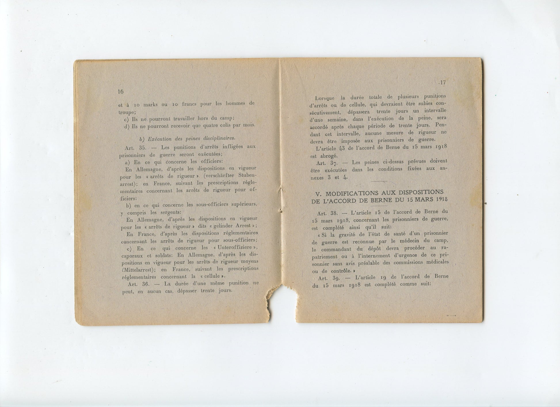 fascicule les accords de Berne concernant les prisonniers de guerre allemands et français en Suisse 1914-1918