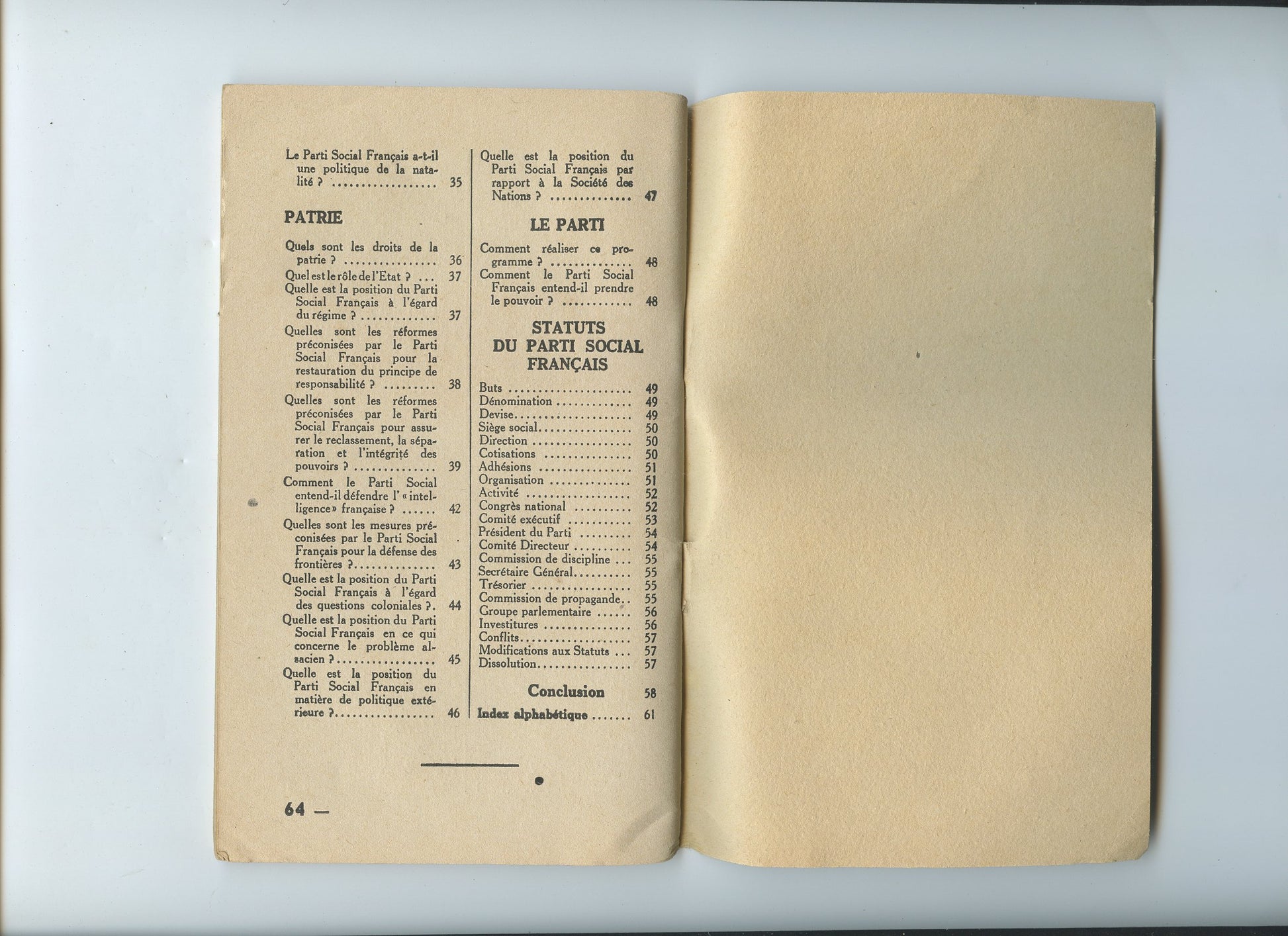 gros fascicule du PSF, croix de feu, colonel de la Roque, 64 pages