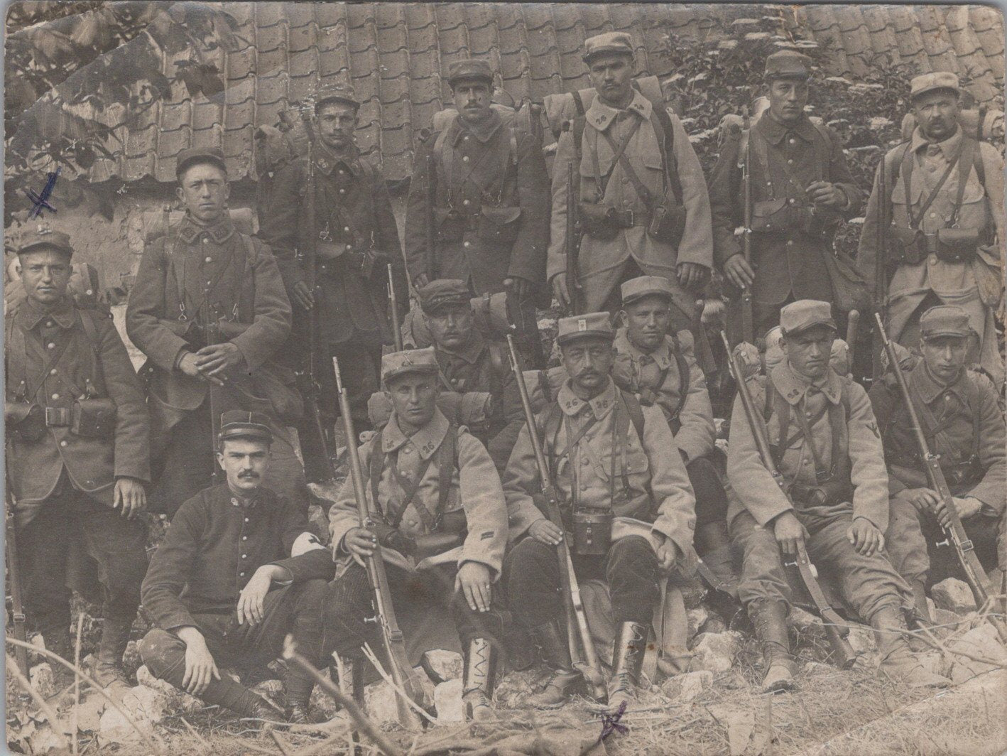 photo escouade de poilus du 26°RI équipés ersatz 1915 12 x 9 cm