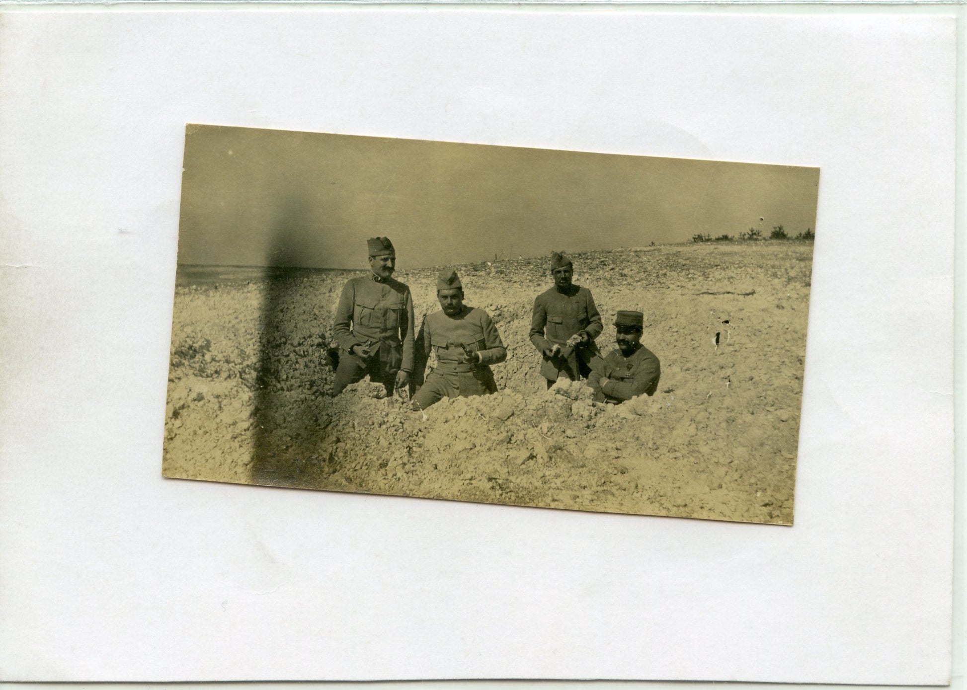 photo officiers dans un trou d'obus Main de Massiges Champagne 1915, 44°RAC 1915 100x55 mm